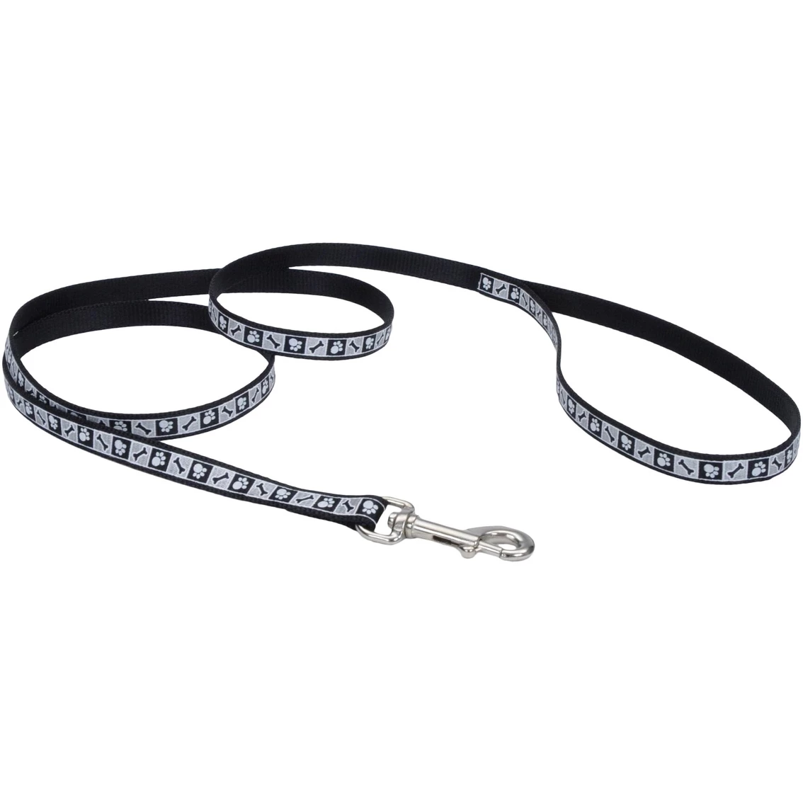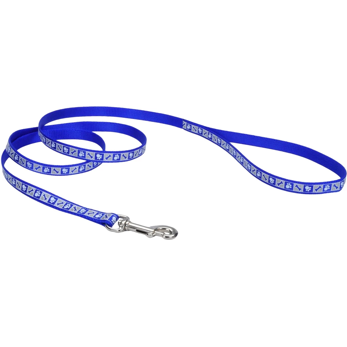 This leash with paws and squares from Coastal Pet is .375 in. wide and is perfect for puppies or petite dogs. Choose from black, blue or red. Model: 46385BBPS04.