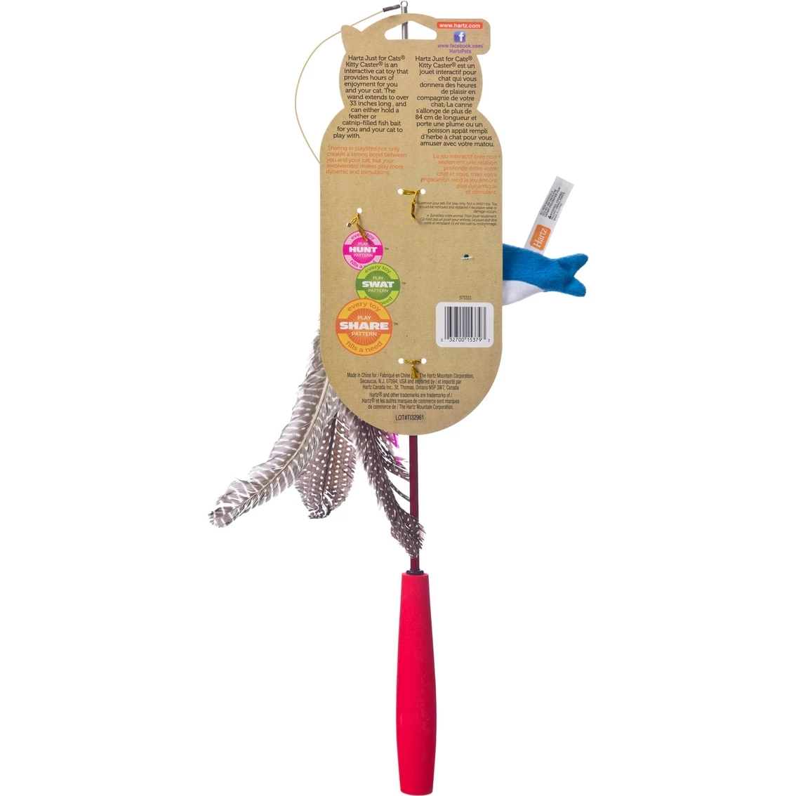 Keep your kitty active with the Hartz Just For Cats Kitty Caster Catnip Play Wand Interactive Cat Toy with Bait. Designed to help you bond with your pal through interactive swatting play, it has an extendable wand and plenty of fluttery, wispy feathers and a plush catnip-filled “bait” fish to keep your pal engaged, not to mention adding much-needed exercise to his day. The dangling lures and catnip are sure to make playtime that much more exciting, and the durable fishing line means it can stand up to everyday play. Great for indoor cats who need to keep moving, it activates your pal’s prey-chasing instinct so you can watch him hunt, whack, thump and pounce!