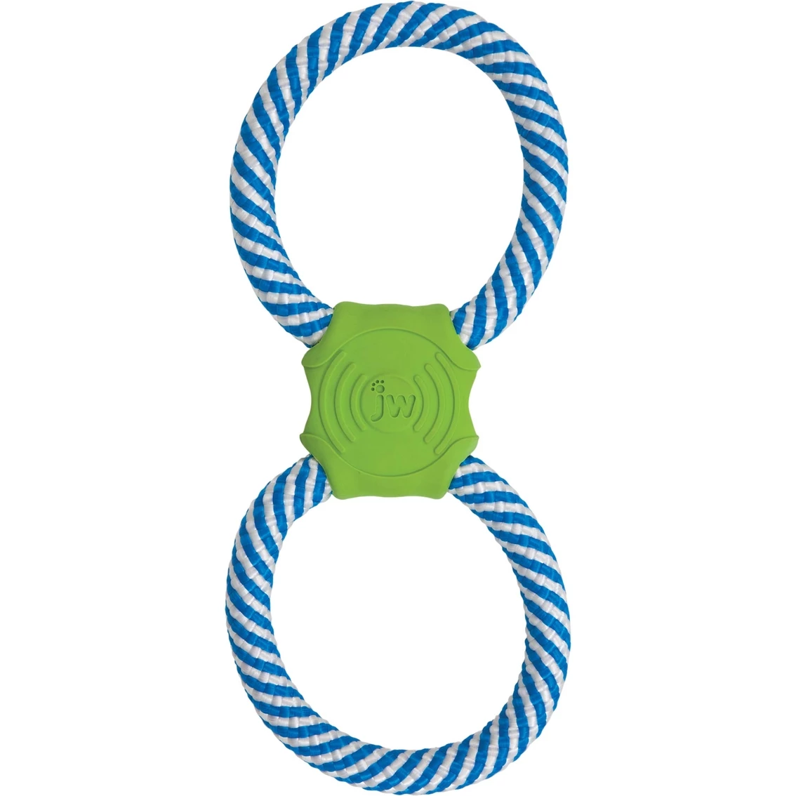 This fun Giggle Tug toy from JW features a hilarious giggle sound that entices pets to shake and tug. The two strong rope loops are connected by a durable rubber piece that contains the sound that will make play time fun again. Model: 32990.