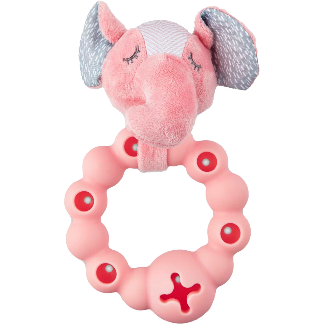 The Leaps & Bounds Little Chews Treat Dispensing Ring Puppy Toy gets their young jaws engaged and chomping with a stimulating texture. It also provides them an appropriate outlet for their natural need to chew. The Treat Dispensing Ring Puppy Toy features plush and treat dispensing TPR. Dog toy noises encourage active play. Incentivizes food-motivated play. Tough-o-Meter rated. Gentle. Model: 2762594.