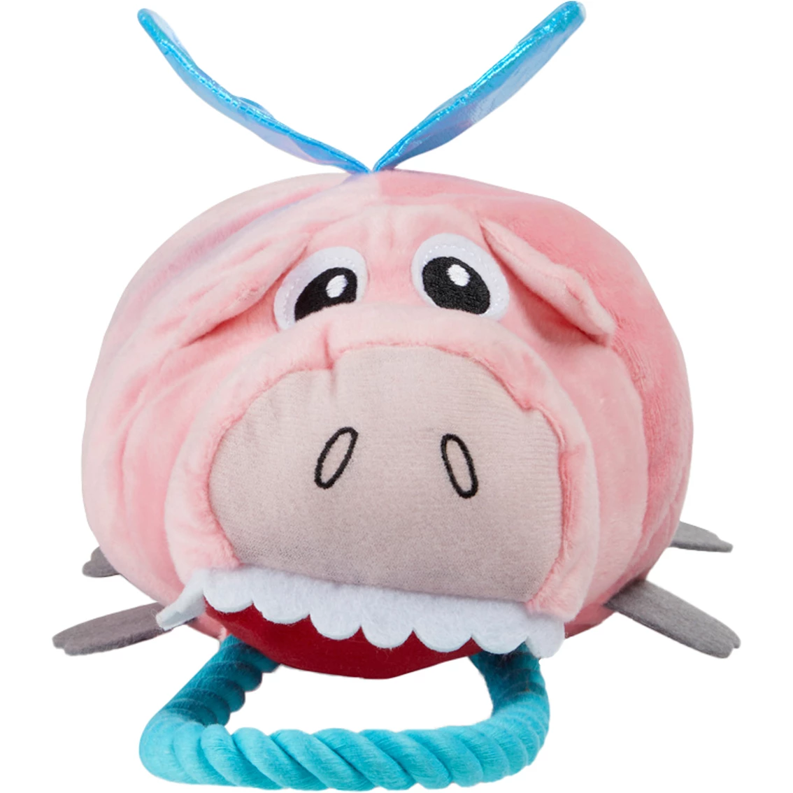 Prove to your pup that pigs can fly with the ultra-soft and-fun Leaps & Bounds Piglet in the Sky Plush and Rope Dog Toy. Great for a game of tug, or as an outlet for stress and energy while shredding. Model: 3141802.