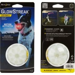 The GlowStreak LED Ball from Nite Ize is the most technologically advanced nighttime fetch ball ever made and holds up to the best arm or ball launchers around. This robust rubber ball has a protected inner core that contains an advanced motion-activated LED module with bright red or color-changing Disc-O LEDs and it turns on with a simple bounce. It also features an auto shut-off function after ten minutes without a bounce. The molded, shockproof, removable polycarbonate core houses the LED/battery module and screws securely into place creating a waterproof seal. The same size as a tennis ball and invincible to water or slobber, this tough little ball floats and is great for the dog who loves to swim. The unique grooved design on the surface creates a bite friendly exterior that is easy to pick up for small and large dogs alike. Powered by replaceable, long-lasting batteries, you can have up to 35 hours of playtime with the GlowStreak LED Ball.