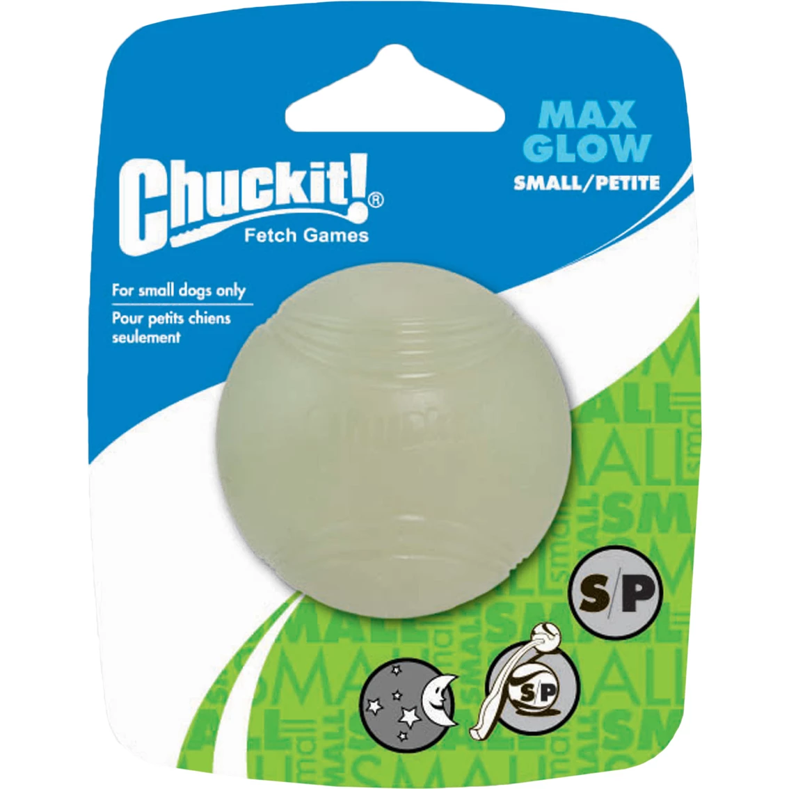 Extend fetch time to early mornings and late nights with LIGHTPLAY fetch toys by Chuckit from Petmate! It has a bright, long-lasting glow; 5 minutes generates 20 to 30 minutes of high-visibility, lighted play. This ball is made of high quality materials and proprietary glow pigment that allows the game to keep going when the sun goes down. Its glow in the dark ability charges quickly under any bright light. Recharge it in seconds with a bright flashlight. Use it in the park, in your backyard or anywhere there is plenty of room. This ball is also launcher compatible. Fast charging MAX GLOW rubber helps you and your dog track the ball in low light. MAX GLOW products are made with a safe, high quality photo luminescent material that is both chemically and biologically inert. Model: 323.