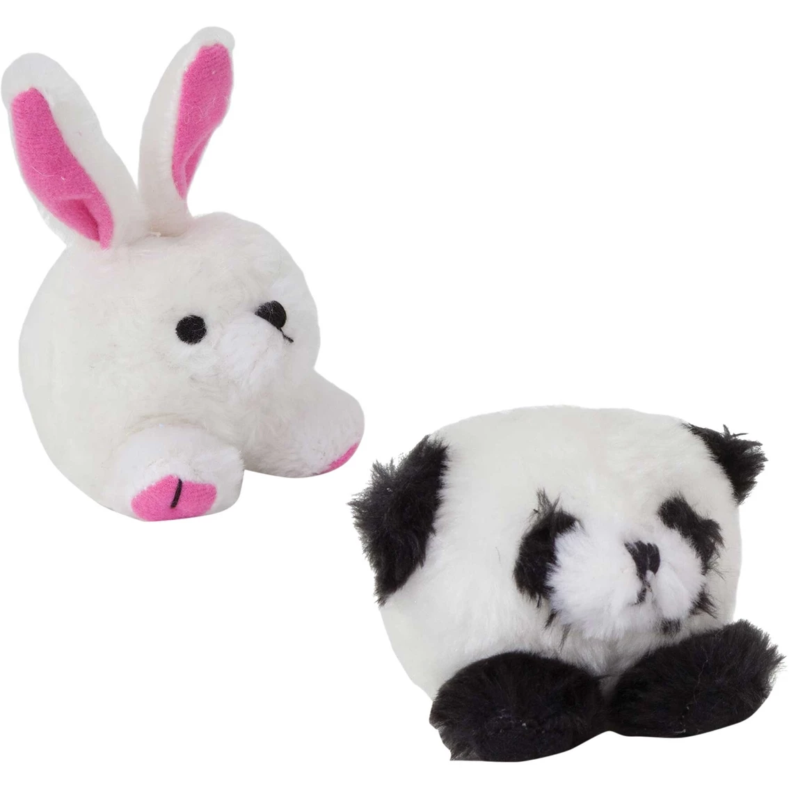 Petmate brings you Zoobilee’s Squatters, small dog and puppy toys that are adorable, ball-shaped animal plush toys with lots of personality. Soft for your dog to bite, yet durable and tough enough for a game of fetch. The Panda and Rabbit characters feature a fun squeaker to drive your dog wild. Dogs love squeaky plush toys like these Squatters! These soft ball-shaped plush toys are the perfect shape for most doggie mouths to squeak non-stop for hours. Made from washable synthetic fabrics and each toy contains a squeaker. Pattern construction allows for fewer small pieces and less seams. Durable construction and double stitched seams for durability. Ideal for tossing, chasing and pouncing. Inner squeaker entices and invites your puppy or toy breed to chew and play.
